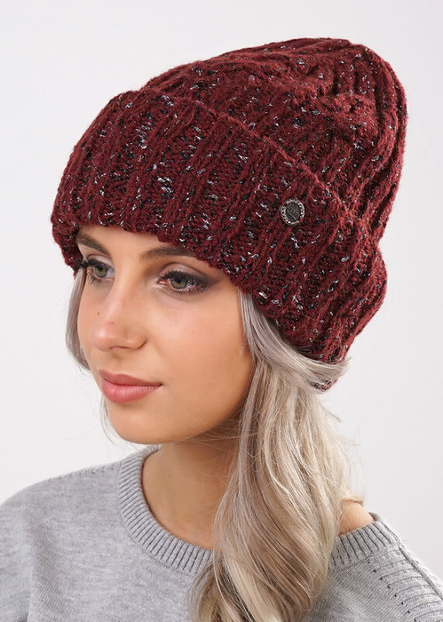 Стильная шапка с двойным объемным отворотом, в центральной части ластичное переплетение переходит в косы. Дополнительное утепление флисом по всей шапке.