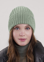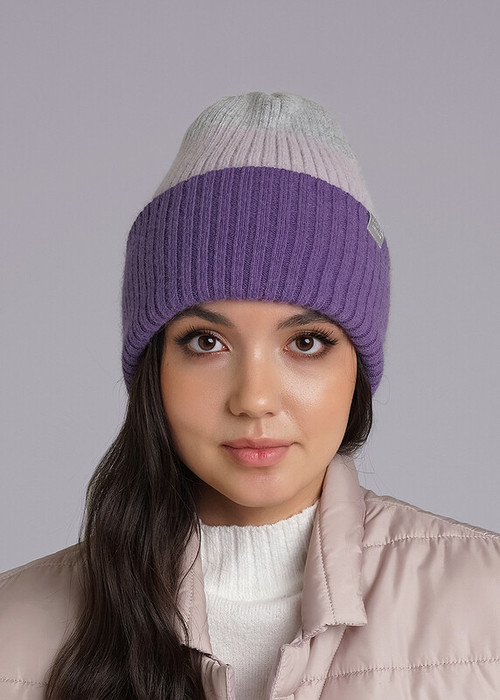 Женская двойная шапка с отворотом , декорирована нашивкой логотип в височной зоне. Подойдёт для холодной зимы.