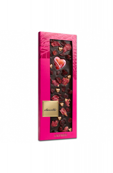 Молочный шоколад ChocoMe с сердечками, кусочками вишни, клубники