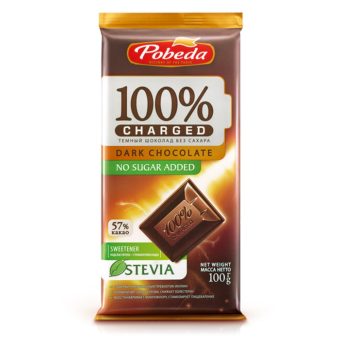 Тёмный шоколад без сахара «Чаржед» создан для тех, кто всегда следит за составом и здоровьем. В этом шоколаде 57 % какао-бобов высшего качества, а вместо сахара натуральный сахарозаменитель стевиолгликозид. Стевиолгликозид – очищенный экстракт растения стевии (Stevia rebaudiana), который придает листьям сладкий вкус. Растение стевия родом из Южной Америки. Это уникальный природный сахарозаменитель, не имеющий аналогов, благодаря особенной сладости и натуральному происхождению. Натуральное какао – настоящий кладезь полезных веществ: содержит фосфор, железо, фтор, калий. В составе шоколада без сахара также присутствует натуральный пребиотик инулин – он стимулирует пищеварение, восстанавливает микрофлору кишечника, нормализует сахар в крови. Шоколад «Чаржед», заряженный на здоровье. В шоколаде присутствуют антиоксиданты, нейтрализующие свободные радикалы и замедляющие старение организма.