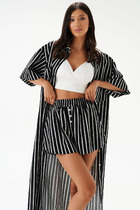 Шорты выполненные из хлопкового полотна. Характеристики: широкие, короткие, пояс притачной, присборен на резинку. Имеет две отделочные строчки по краям, образующие кулису, в которую продет шнур-завязка. В боковых швах карманы с отрезным бочком. Низ обработан в подгибку с закрытым срезом. Длина 32 см