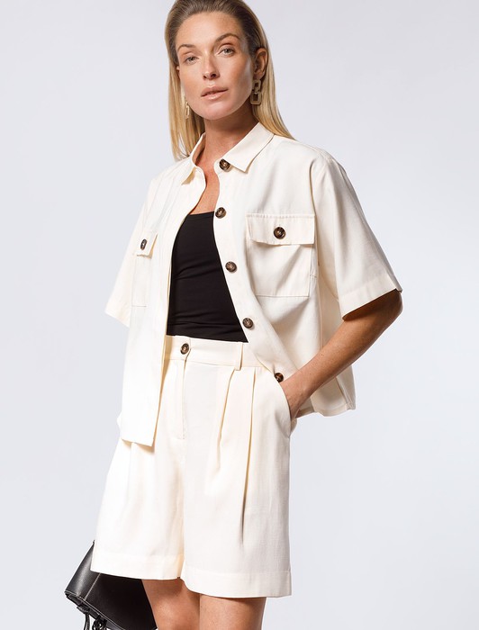 Состав: 70%Лиоцелл (Вис) 30%ПЭШорты выполнены из плотного лиоцела. Добавление синтетических волокон в составе изделия предотвращает сминаемость. Эластичный пояс на резинке фиксирует изделие не сковывая движений. Есть дополнительные шлевки для ремня. Свободная модель дополнена боковыми карманами и металлическим логотипом бренда. Для создания завершенного образа сочетайте в костюме с топом D23.058, блузкой D28.054, D29.238, D29.239 и D29.240