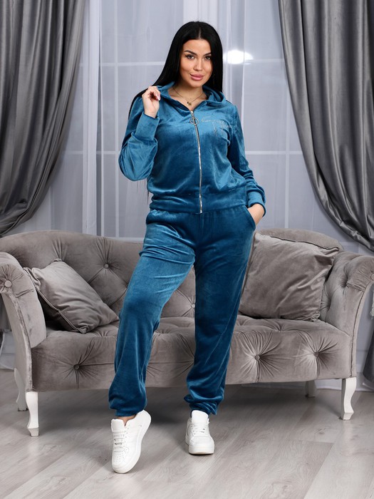 Совместные покупки Нижний Тагил Женская одежда Домашняя одежда — СК-331 велюр ЖЕНСКИЙ СПОРТИВНЫЙ КОСТЮМ (Лазурный)