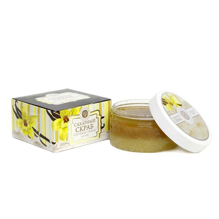 Экстракт козьего молока смягчает и успокаивает самую сухую и чувствительную кожу, стимулирует синтез коллагена, продлевая молодость кожи. Ваниль повышает упругость кожи, обладает регенерирующим свойством. Аромат эфирных масел оказывает приятное расслабляющее действие. Сахарные кристаллики в сочетании с маслами оливок, авокадо, жожоба бережно очистят кожу от загрязнений и отмерших клеток, сделают ее мягкой, нежной и шелковистой. После скраба не требуется применение дополнительных средств для увлажнения кожи.