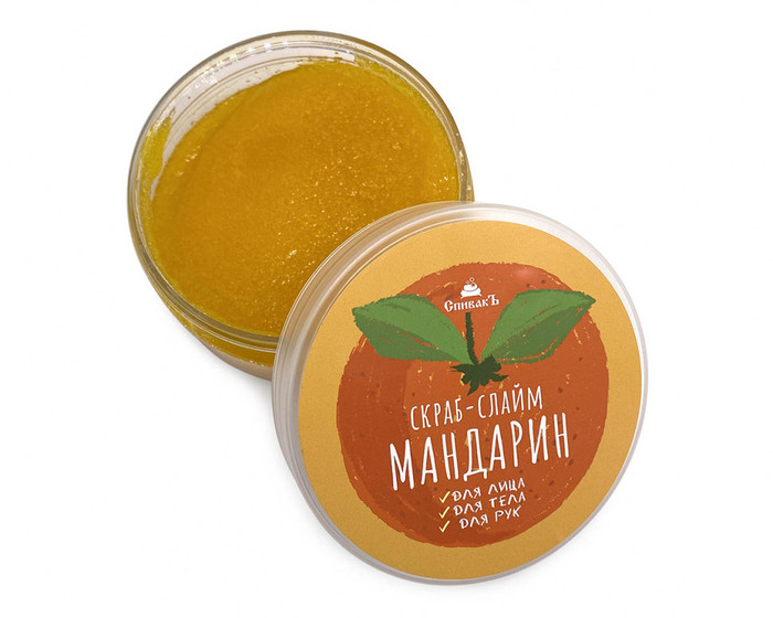 Скраб-слайм Мандарин с ярким ароматом сочного мандарина! Обладает необычной желеобразной тянущейся текстурой, которая напоминает популярную анти стресс игрушку - слайм. Скраб очищает, способствует отшелушиванию ороговевшего слоя кожи, ускоряя процесс ее обновления. Натуральное масло мандарина тонизирует и улучшает тургор кожи, масло облепихи обладает восстанавливающими свойствами. После применения скраба кожа становится мягкой и бархатистой.