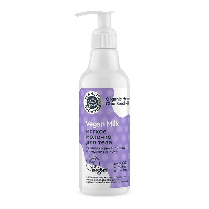* Органическое молочко семян чиа — новинка в мире веганского молока. Повышает эластичность благодаря жирным кислотам в составе, насыщает влагой и дарит сатиновое сияние.