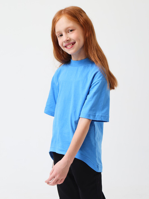 Универсальная трикотажная футболка прямого силуэта с полустойкой и фигурным низом.