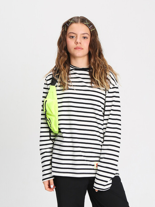 Лонгслив выполнен в актуальную черно-белую и бело-голубую полоску, что позволяет вписать его в любой гардероб.