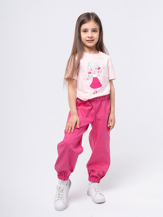 Брюки-джоггеры для девочек. Модель выполнена из теплого вельвета, что делает ее идеальной для прогулок. Брюки прямого силуэта без застежки, с поясом на резинке. Боковые карманы и резинки по низу брюк добавляют удобства и функциональности. Брюки представлены в двух цветах.