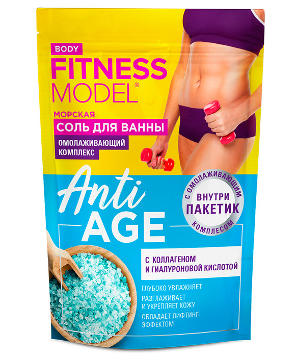 Соль для ванны морская Anti-age FITNESS MODEL body 500г+30