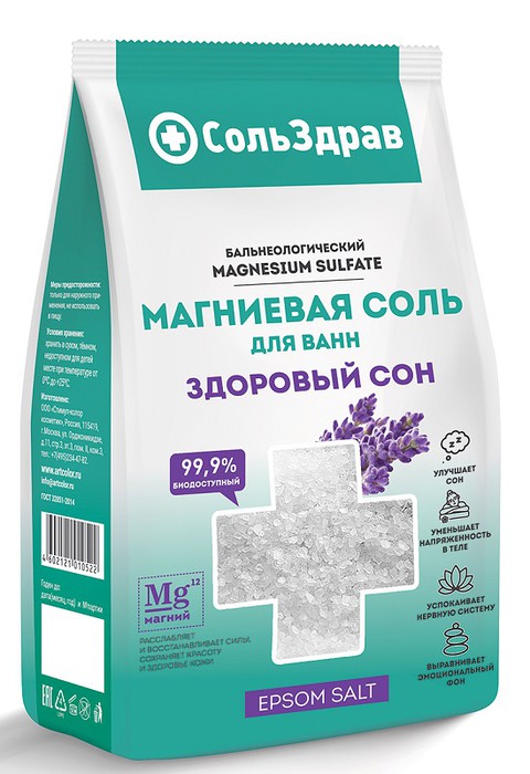 СольЗдрав Магниевая соль для ванн «ЗДОРОВЫЙ СОН», 800г