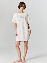 Женское домашнее платье с коротким рукавом и V-образным вырезом, длиной выше колена.