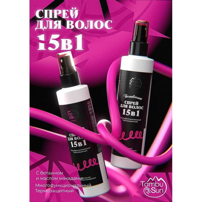 Спрей для волос «15 в 1» — это натуральное многофункциональное средство, которое оказывает мощное термозащитное действие. Спрей равномерно распределяет тепло от стайлинговых приборов и предотвращает перегревание волос, предупреждая разрушение кератина и иссушение кутикулы. Контролирует пушистость, а также обладает выраженным антистатическим эффектом — нивелирует негативное влияние сухого воздуха и устраняет наэлектризованность волос.