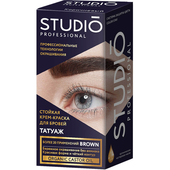 Первая стойкая краска для бровей с эффектом татуажа! Инновационная профессиональная технология! Обеспечивает ультра стойкое окрашивание в зоне роста бровей. Создает яркий выразительный взгляд. Система окрашивания COLOR STAY позволяет глубоко проникать интенсивным красителям в структуру волоса и создает ЭФФЕКТ ТАТУАЖА. Сохраняет красивую форму и четкий контур до трех недель. Органическое касторовое масло проникает в волосяные луковицы, уплотняет их и активизирует рост. Мягкая формула БЕЗ АММИАКА бережно окрашивает. Мисочка для смешивания позволяет регулировать количество требуемого состава, а удобный аппликатор облегчает нанесение краски. Рассчитана на 20 применений.