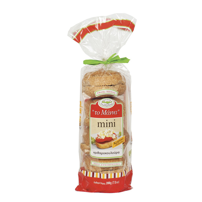 Домашние ячменные сухари двойной выпечки из цельнозерновой муки MANNA. Богатые клетчаткой. Очень питательны и являются хорошим источником энергии при низкой калорийности. Изготовлены только из натуральных ингредиентов, выращенных и произведенных на острове Крит. Ячменные сухари MANNA – неотъемлемая часть знаменитой критской диеты.