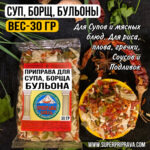 Содержит в составе всё самое необходимое для первых блюд: морковь, пастернак, лук-порей, корень сельдерея, петрушки, сухой томат, зелёный и красный сладкий перец и сушёные листья укропа, петрушки и сельдерея.