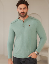 Тонкий лонгслив с круглым воротом на пуговицах из премиального хлопка с эластано