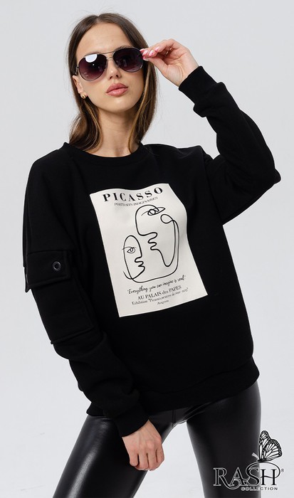 Совместные покупки Нижний Тагил Женская одежда Толстовки — Свитшот "Пикассо" утепленный черный