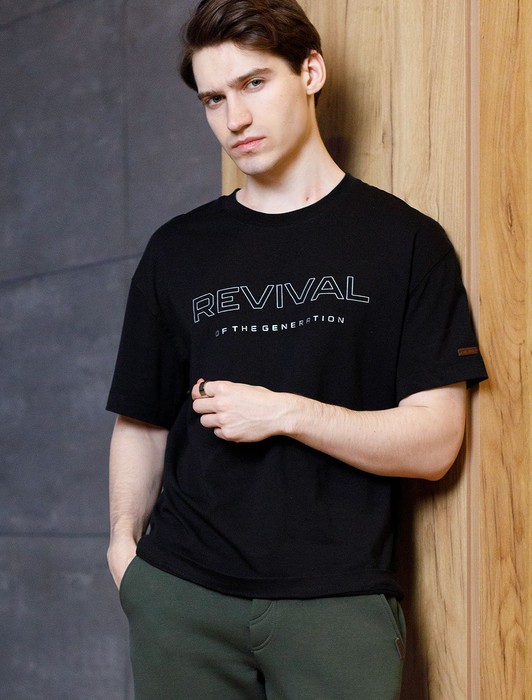 Состав: 92%Хлопок 8%ПУ Плотность: 170 Г/м2Перевод принта: Revival of the generation - возрождение поколения. Футболка свободного кроя выполнена из премиального хлопка. Авторский принт нанесен красками с устойчивым покрытием. Благодаря эластану, носить изделие очень комфортно, и оно сохранит свой безупречный вид в течение долгого времени. На рукаве нашивка из эко-кожи с логотипом бренда.