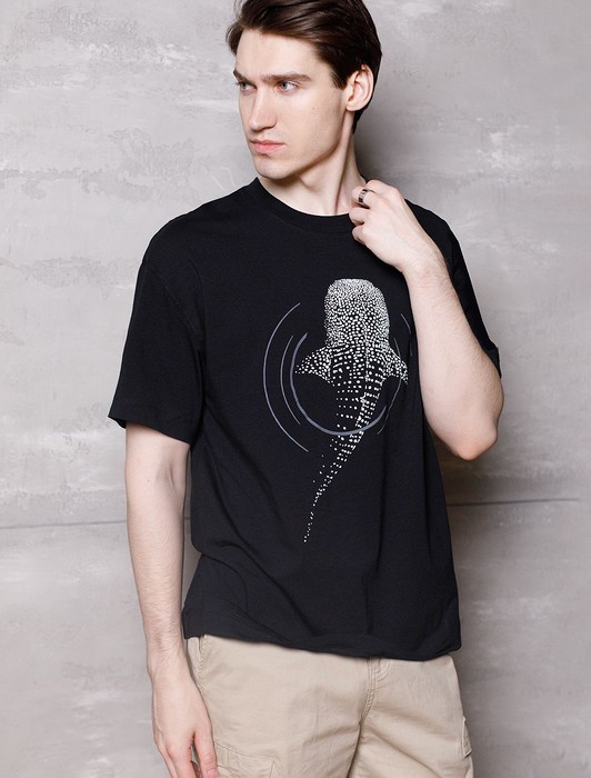 Состав: 92%Хлопок 8%ПУ Плотность: 170 Г/м2Футболка свободного кроя выполнена из премиального хлопка. Авторский принт нанесен красками с устойчивым покрытием. Благодаря эластану, носить изделие очень комфортно, и оно сохранит свой безупречный вид в течение долгого времени. На рукаве нашивка из эко-кожи с логотипом бренда.