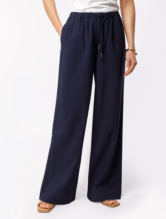 Состав: 70%Лиоцелл (Вис) 30%ПЭ Параметры модели на первом фото: Рост 172, бюст 88, талия 64, бедра 88Брюки свободного кроя выполнены из плотного лиоцелла. Модель дополнена карманами и поясом с эластичной резинкой и регулируемым шнурком с золотистой фурнитурой. Ткань изделия отлично держит форму, плавно драпируется и не просвечивает. В теплое время года приятно охлаждает кожу. Добавление синтетических волокон в составе изделия, предотвращает сминаемостьи поддерживает формоустойчивость. Брюки сочетаются в костюме с топом D23.063, блузкой D29.266, D29.267 и жилетом D27.002