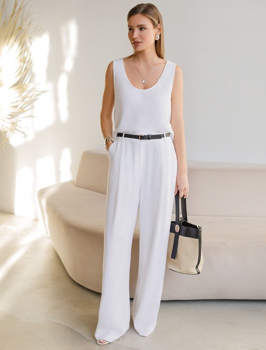Совместные покупки Нижний Тагил Женская одежда Футболки — Свободные брюки палаццо на эластичном поясе изо льна с вискозой