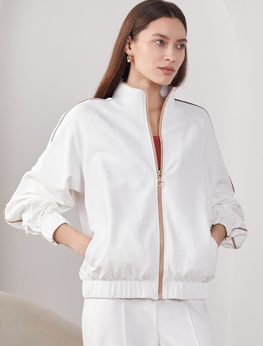 Совместные покупки Нижний Тагил Женская одежда Футболки — Свободный бомбер с лампасами на молнии из петельчатого футера двухнитки с эласта