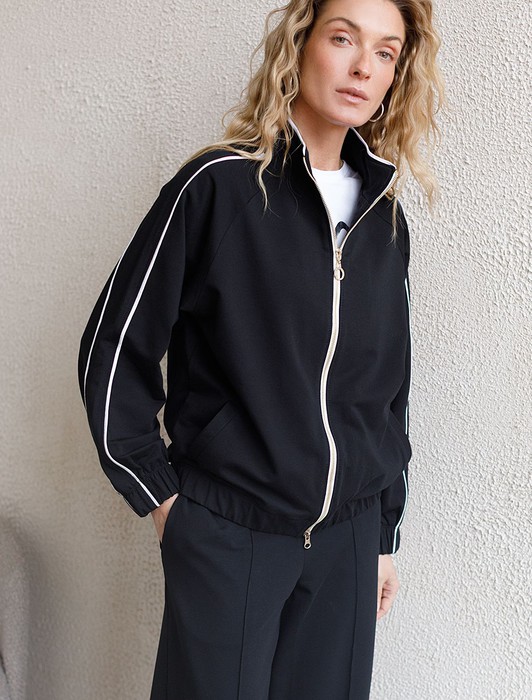 Совместные покупки Нижний Тагил Женская одежда Футболки — Свободный бомбер с лампасами на молнии из петельчатого футера двухнитки с эласта