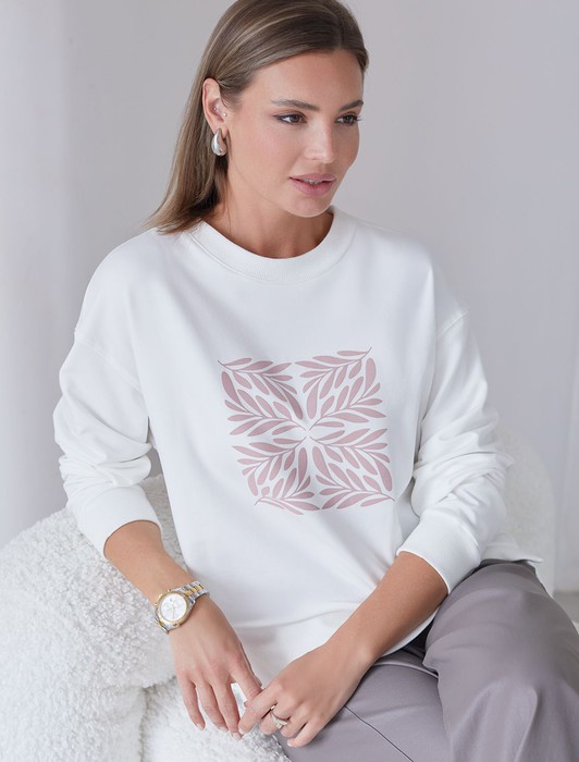 Совместные покупки Нижний Тагил Женская одежда Костюмы, комплекты — Свободный свитшот с принтом и разрезами из эластичного футера двухнитки без наче