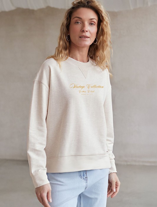 Свободный свитшот с принтом и разрезами из эластичного футера двухнитки без наче