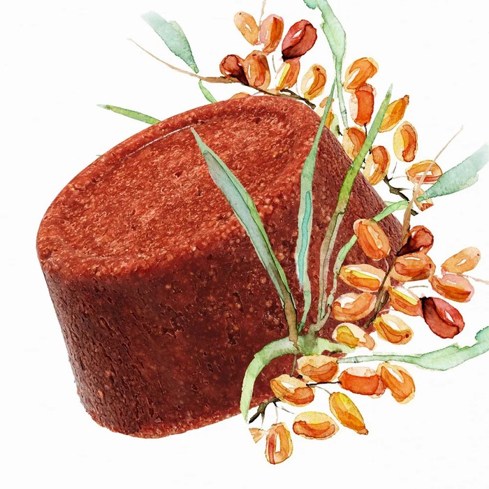 Состав: кокосульфат натрия, изотионат натрия и жирных кислот кокосового масла, канделильский воск, масло семян подсолнечника (и) фосфолипиды, масло кокоса, д-пантенол, экстракт календулы, экстракт облепихи, витамин Е, молочная кислота, парфюмерная композиция, красный и желтый пигменты.