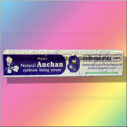Сыворотка для роста и подкрашивания ресниц и бровей с экстрактом синего чая Mistine Mistine Natural Anchan Eyebrow Lining Serum Натуральная сыворотка для роста, питания и подкрашивания в черный цвет ресниц и бровей на основе натуральных экстрактов синего чая, эклипты и литсеи от тайского производителя косметики бренда Mistine. Сыворотка не только укрепляет реснички, способствует их росту и утолщению волосков, но и за счет входящего в состав естественного красителя – экстракта анчана (тайский синий чай) подкрасит волоски ресниц и бровей в естественный черный цвет, придаст блеск, яркость и выразительность взгляду. Формула сыворотки для роста ресниц с анчаном не содержит парабенов, парфюмированных компонентов и синтетического красителя. Сыворотка для ресниц и бровей Mistine протестирована дерматологами и не вызывает аллергии и раздражения. Произведено в Таиланде. Объем сыворотки для ресниц 1,9 грамм. Флакон с сывороткой для роста ресниц Mistine имеет на кончике кисточку, благодаря которой наносить средство на реснички очень удобно - 1-2 раза в день легким движением следует проводить по ресницам (без макияжа) или бровям.