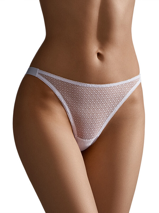 Трусы «танга» из эластичного кружева со средней линией талии. Эстетично подчеркивают бедра, делают фигуру более соблазнительной и создают эффект ажурной вуали на обнаженной коже.