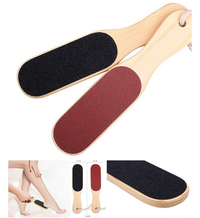 Терка для ног наждачная двусторонняя, деревянная. Терка с удобной ручкой - это настоящая находка для ухода за пяточками: с их помощью без труда можно избавиться от огрубевшей кожи на пятках и исправить несовершенства в виде натоптышей и мозолей.Абразив на обеих сторонах терки имеет различную зернистость. Сторона с более крупной зернистостью необходима для первоначальной обработки кожи, более мелкий абразив применяется для завершающей стадии обработки.После применение терки кожа стопы становится гладкая, более мягкая и эластичная.Используется для сухой и влажной обработки стоп.