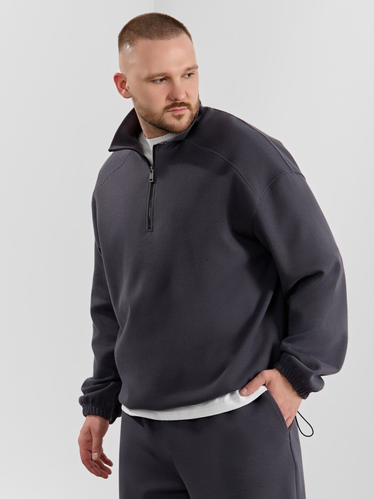 Толстовка мужская из трикотажного полотна "интерло-пике". Толстовка свободного покроя, с длинными втачными рукавами, заниженными проймами и воротником-стойкой. Полочка с кокетками, с неразъемной застежкой "молния", обработанной в рамке. Нижние срезы рукавов обработаны с эластичной тесьмой, нижний срез изделия - подгибкой, с эластичным шнуром и фиксаторлм для регулировки ширины изделия на этом участке.