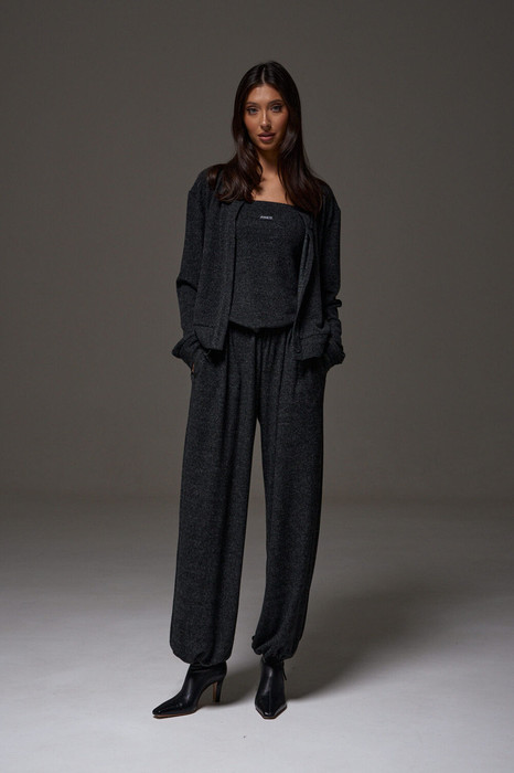 Топ прямого кроя с открытыми плечами, выполнен из трикотажного ворсистого полотна графитового цвета. Характеристика: прямой крой, верх изделия по передней и задней части на резинке, спереди брендированная нашивка. Длина по передней части 39 см, по задней части 35 см.