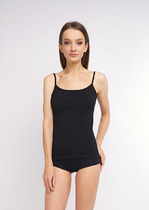 Топ выполнен из трикотажного полотна. Топ приталеннного силуэта, длиной выше линии талии. Перед двойной. Топ на нерегулируемых бретелях из основной ткани.