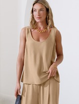 Свободный топ с U-вырезом изо льна с вискозой по косой