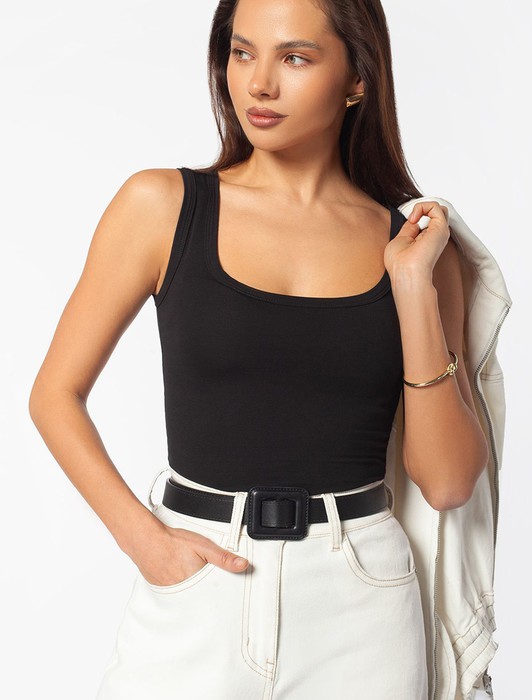 Эта базовая майка подойдет на все сезоны, в том числе, как нижний слой. Майка подходит для больших, включая 56 размер, и маленьких размеров, а также смотрится изящно как на высокий рост, так и на низкий. Благодаря своей универсальности топ будет уместен на работе, деловых встречах или в повседневном образе. Он станет гармоничным дополнением, сохраняя элегантность даже в офисной обстановке. Незаменим в поездки, в путешествия, на отдых.
