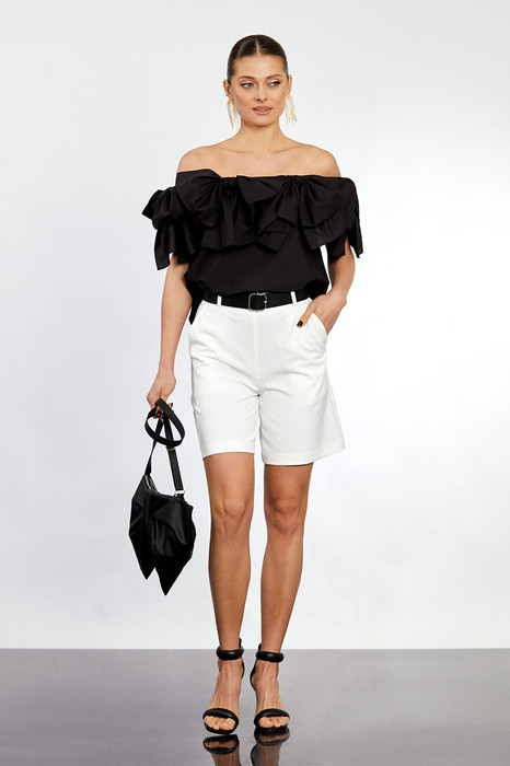 - с открытым декольте, вырез горловины горизонтальный, бретели спущены