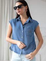 Совместные покупки Нижний Тагил Женская одежда Костюмы, комплекты — Топ с вырезом лодочка и асимметричным разрезом на спине из джинсового лиоцелла