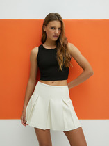 Топ эффектно смотрится благодаря вязке «английская резинка» и отлично пойдет для создания стильных образов.