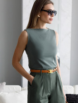 АКЦИЯ!!! SM122 Топ удлиненный без рукавов с воротом из микрофибры в рубчик