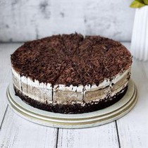 Слои шоколадного бисквита, пропитанного вишневым сиропом, чередуются со слоями крема из свежих сливок и сочных вишен. Украшен шоколадной стружкой.