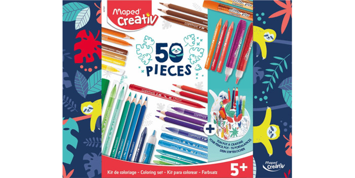 Набор для рисования и творчества Maped CREATIV из 50 предметов от французского производителя школьных товаров Maped, имеющего более чем 75-летний опыт производства, содержит всё необходимое для творчества на бумаге. В набор входят фломастеры, цветные карандаши, восковые мелки и клей с блестками множества ярких и насыщенных цветов с превосходной укрывистостью. В набор также входит пенал для раскрашивания и сборки карандашей. Этот пенал позволяет аккуратно и безопасно хранить карандаши. Благодаря широкому выбору цветов рисовать никогда не наскучит. Рисование также развивает у детей творческие способности и образное воображение.