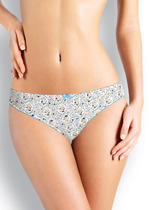 Трусики-стринги из гладкого эластичного материала с цветочным рисунком с отделкой из кружева и ажурного канта. Центральная часть декорирована атласным бантиком.В комплект можно подобрать Бюстгальтер Push-up.