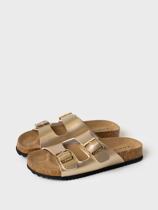 Модные и удобные сабо в стиле биркеншток подходят под любую одежду от джинсов до платьев. Босоножки выполненые из искусственной кожи золотистого цвета. Все ремни регулируются на необходимый объем стопы и надежно фиксируют ногу. Стелька профилированная, сконструирована я с учетом строения стопы. Мягкая микрофибра приятна по ощущениям для стопы и легка в уходе. Конструкция сандалий с высокими бортами удерживают стопу в правильном положении, препятствует ее скольжению и способствует правильному анатомическому развитию стопы. Легкая подошва из ЭВА с противоскользящей ходовой поверхностью легкая и  хорошо амортизирует при ходьбе.