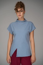 Туника  из набивного кулирного полотна с застежкой на петли-пуговицы, на полочке накладной кармашек, горловина V-образная, в боковых швах карманы, проймы рукава окантованы, низ изделия фигурный.