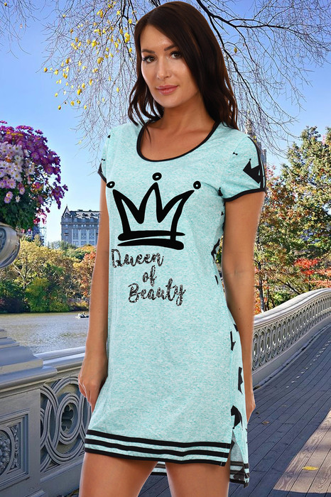 Туника прямого силуэта в спортивном стиле, средней длины, с удлиненной спинкой, округлой горловиной. Рукав втачной, короткий, с лампасами. В нижней части боковых швов обработаны разрезы. По низу полочки и спинки расположены лампасы контрастного цвета. Горловина, низ рукавов и туники обработаны бейкой из полотна контрастного цвета.