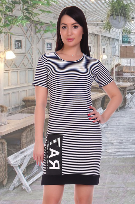 Туника из вискозного полотна, прямой силуэт горловина круглая, рукав короткий втачной, по низу изделия - манжет из отделочной ткани, по боковым швам разрезы, на полочке принт.